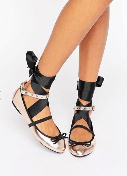 - Ballerine stringate: torniamo tutte un pò bambine e ripensiamo ai pomeriggi a danza sulle punte, proprio così nascono le ballerine stringate dal genio creativo di Miuccia Prada per Miu Miu. Le ritroviamo con inserti in pelle e borchie per non rinunciare né alla comodità né allo stile.