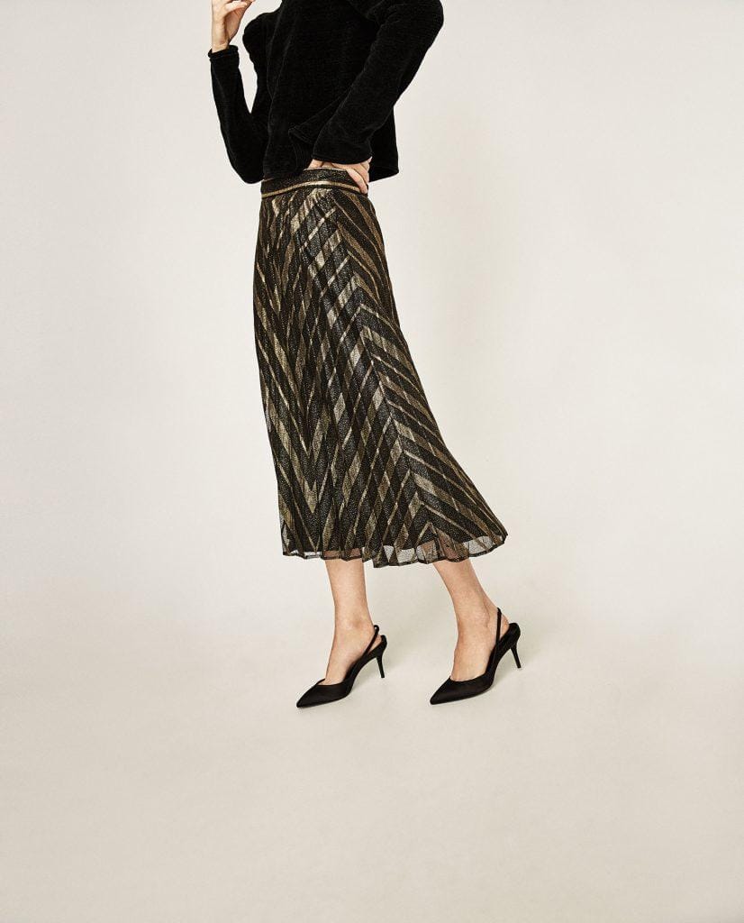 - Gonna plisse: per la gioia di nonne e nipoti, riaffiora dagli anni ’50 con furore. In qualche armadio in soffitta avrete le versioni vintage midi, ma i modelli più moderni sono di tutte le lunghezze mini e maxi. Libero sfogo alle stampe ed allo spirito romantico.