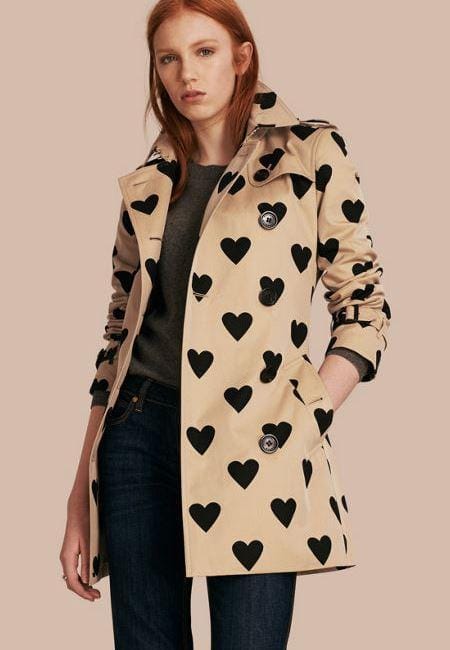 - Trench: gli inglesi non possono farne a meno e con gli sbalzi climatici sempre più frequenti è un capo utilissimo. Ne esistono di tutti i materiali, lunghezze e colori, sarà un gioco da ragazzi trovare il più adatto a voi. Sfizioso quello di Burberry con stampa a cuori; per fidanzati all’ascolto: San Valentino si avvicina.